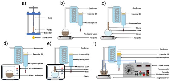 - González-Rivera, J.; Duce, C.; Falconieri, D.; Ferrari, C.; Ghezzi, L.; Piras, A.; Tine, M.R. Coaxial microwave assisted hydrodistillation of essential oils from five different herbs (lavender, rosemary, sage, fennel seeds and clove buds): Chemical composition and thermal analysis. Innov. Food Sci. Emerg. Technol. 2016, 33, 308–318. [Google Scholar] [CrossRef]
