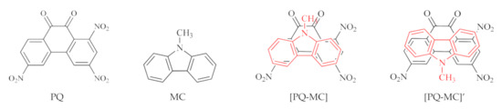 There have been only a few studies on CTCs with 9,10-phenanthrenequinone nitro derivatives as acceptors [10,11,12]. In [11,12], a series of CTCs based on anthracene, phenanthrene, and 9,10-phenanthrenequinone derivatives was studied. Of all the derivatives considered, 1,3,6-trinitro-9,10-phenanthrenequinone showed the strongest acceptor properties.