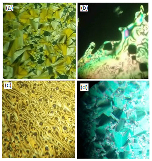 - Al-Mutabagani, L.A.; Alshabanah, L.A.; Ahmed, H.A.; Alalawy, H.H. Synthesis, Mesomorphic and Computational Characterizations of Nematogenic Schiff Base Derivatives in Pure and Mixed State. Molecules 2021, 26, 2038. [Google Scholar] [CrossRef] [PubMed]