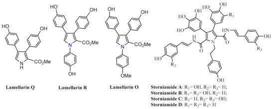 - Fan, H.; Peng, J.; Hamann, M.T.; Hu, J.-F. Lamellarins and related pyrrole-derived alkaloids from marine organisms. Chem. Rev. 2008, 108, 264–287. [Google Scholar] [CrossRef] [PubMed] [Green Version]