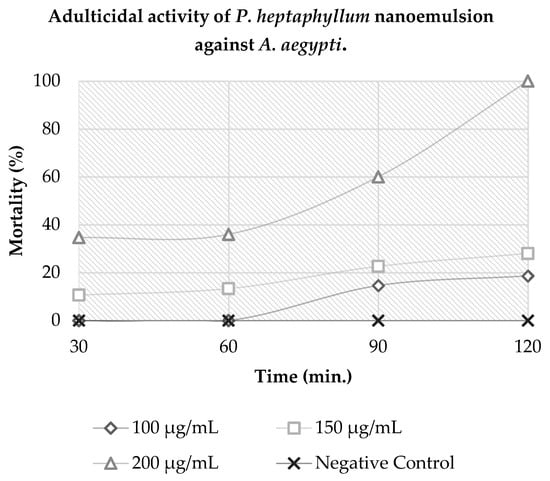 Adulticidal activity of P. heptaphyllum nanoemulsion against A. aegypti.