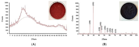 XRD pattern with red (A) and grey (B) selenium nanopowder.