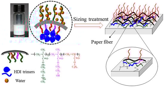Hexamethylene diisocyanate (HDI) trimers emulsions fall into category of active emulsions since they should have free isocyanate (-NCO) contents in the emulsion to react with non-woven fabrics and paper [1,2,3]. Since this reaction could convert the hydrogen bonding into chemical bonds between fibers [4], paper can become a new high-strength, water-resistant, oil-resistant special paper after the treatment. This work can open up broader prospects for the application of paper in packaging, printing, construction, and other industrial and agricultural production [5,6].