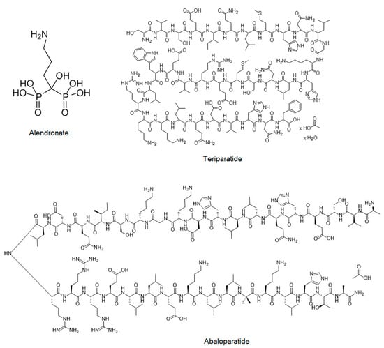 - Leder, B.Z.; O’Dea, L.S.; Zanchetta, J.R.; Kumar, P.; Banks, K.; McKay, K.; Lyttle, C.R.; Hattersley, G. Effects of Abaloparatide, a Human Parathyroid Hormone-Related Peptide Analog, on Bone Mineral Density in Postmenopausal Women with Osteoporosis. J. Clin. Endocrinol. Metab. 2015, 100, 697–706. [Google Scholar] [CrossRef]