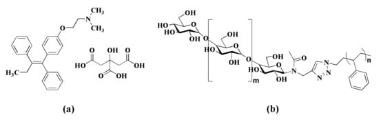 Chemical structures of (a) tamoxifen citrate and (b) maltoheptaose-b-polystyrene (MH-b-PS).