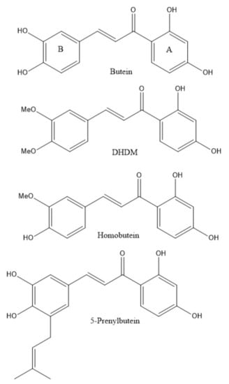 - Serobatse, K.R.N.; Kabanda, M.M. Antioxidant and antimalarial properties of butein and homobutein based on their ability to chelate iron (II and III) cations: A DFT study in vacuo and in solution. Eur. Food Res. Technol. 2015, 242, 71–90. [Google Scholar] [CrossRef]