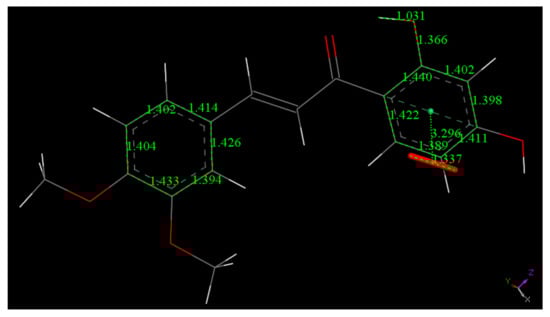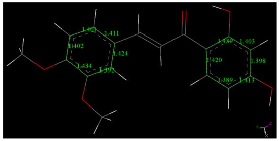 DFT minimum of energy structure of Butein (1). Relevant bond distances of ring B are indicated.
