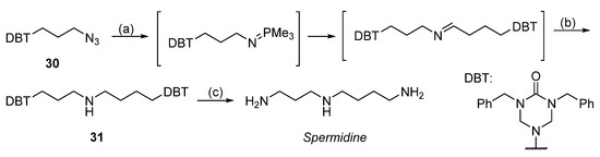 - Kuksa, V.; Buchan, R.; Kong Thoo Lin, P. Synthesis of Polyamines, Their Derivatives, Analogues and Conjugates. Synthesis 2000, 2000, 1189–1207. [Google Scholar] [CrossRef]