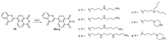 - Li, Q.; Zhai, Y.; Luo, W.; Zhu, Z.; Zhang, X.; Xie, S.; Hong, C.; Wang, Y.; Su, Y.; Zhao, J.; et al. Synthesis and Biological Properties of Polyamine Modified Flavonoids as Hepatocellular Carcinoma Inhibitors. Eur. J. Med. Chem. 2016, 121, 110–119. [Google Scholar] [CrossRef] [PubMed] [Green Version]