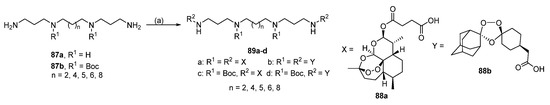 - Pearce, A.N.; Kaiser, M.; Copp, B.R. Synthesis and Antimalarial Evaluation of Artesunate-Polyamine and Trioxolane-Polyamine Conjugates. Eur. J. Med. Chem. 2017, 140, 595–603. [Google Scholar] [CrossRef]