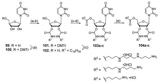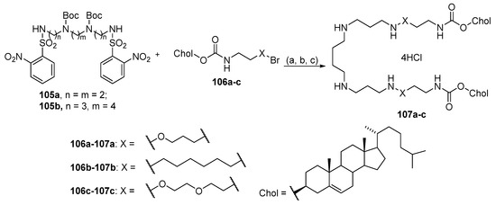 - Oliver, M.; Jorgensen, M.R.; Miller, A. The Facile Solid-Phase Synthesis of Cholesterol-Based Polyamine Lipids. Tetrahedron Lett. 2004, 45, 3105–3107. [Google Scholar] [CrossRef]