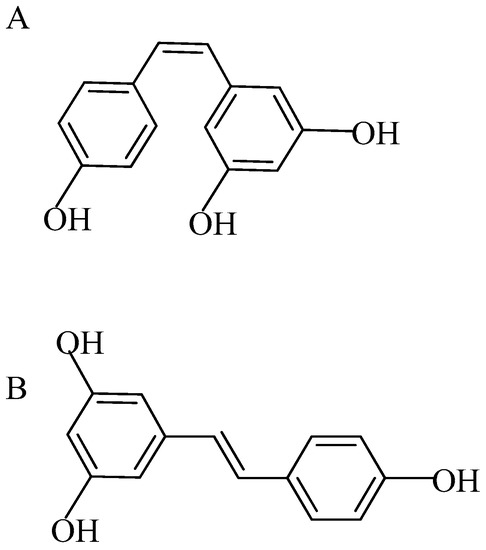 (A) Cis-resveratrol; (B) trans-resveratrol (molecular weight: 228.24).
