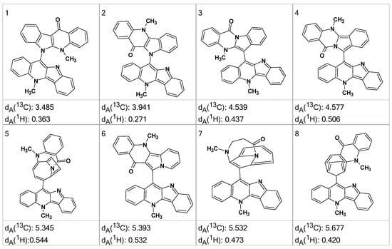 Structure generation resulted in: k =32→(filtering)→13 (k -number of structures generated) and the generation time, tg is 10 s. NMR spectra prediction positioned the cryptolepicarboline molecule first in the ranked file, where dA(2) − dA(1) = 3.3 ppm.