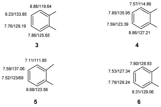13C and 1H chemical shift assignments of four-spin systems 3–6.