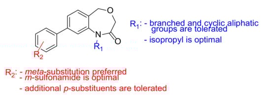 Structure-activity summary for the core 1,5-dihydrobenzo[e][1,4]oxazepin-2(3H)-one.