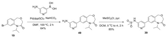 4.14.45. N-(5-(1-Isopropyl-2-oxo-1,2,3,5-tetrahydrobenzo[e][1,4]oxazepin-8-yl)pyridin-3-yl)methanesulfonamide (39)