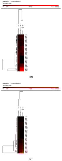 Hierarchical clustering analysis (HCA) chart of GC-MS analysis of volatiles of PO (a), RO (b), SO (c) and LO (d).