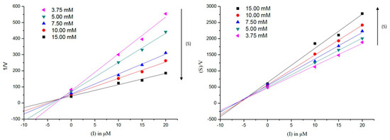 Dixon (left) and Cornish–Bowden (right) plots for most active AChE inhibitor 1.