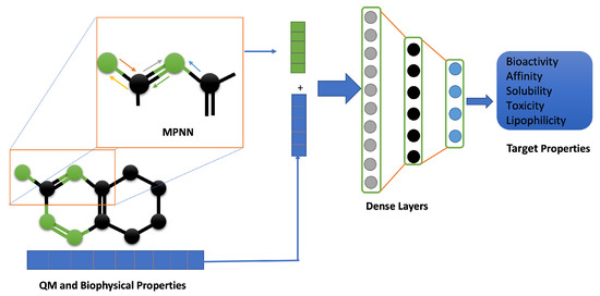 - Gilmer, J.; Schoenholz, S.S.; Riley, P.F.; Vinyals, O.; Dahl, G.E. Neural Message Passing for Quantum Chemistry. arXiv 2017, arXiv:1704.01212. [Google Scholar]