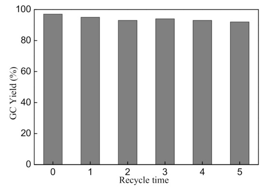 To demonstrate the stability and reusability of the prepared catalyst material, it was recycled and reused for five consecutive runs with the model reaction. Gratifyingly, the Co-N-Si/AC was successfully recycled without any obvious loss of catalytic activity (Figure 3). Only a slight decrease in Co content from 1.3 wt% to 1.12 wt% can be found (determined by ICP-OES analysis). After recycling, a slight decrease in specific surface area, pore volume and width of the Co-N-Si/AC (used) was found but still belongs to mesopores and causes no significant decrease in catalytic performance (Table S2).