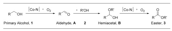 - Jagadeesh, R.V.; Junge, H.; Pohl, M.M.; Radnik, J.; Bruckner, A.; Beller, M. Selective Oxidation of Alcohols to Esters Using Heterogeneous Co3O4–N@C Catalysts under Mild Conditions. J. Am. Chem. Soc. 2013, 135, 10776–10782. [Google Scholar] [CrossRef]