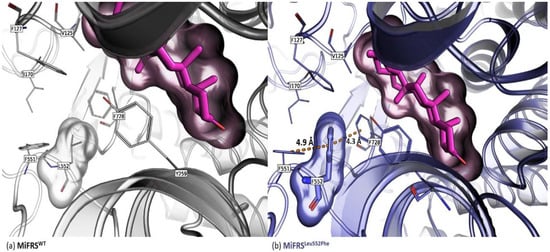 2.1.2. Met549 and Leu552 Influence the Specificity of MiFRS