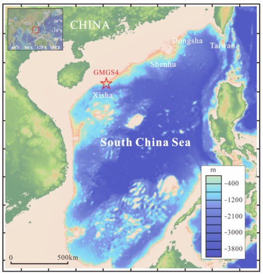 The South China Sea (SCS) is located at the confluence of the Pacific, Eurasian, and Indian-Australian plates, and was formed during the late Jurassic-early Cretaceous [1]. It harbors numerous natural gas hydrates and conventional gas/oil reservoirs [2,3,4]. In light of the great gas hydrate and petroleum/gas reservoir potential, as well as the significant environmental effects (e.g., global warming and petroleum/gas exploration), the SCS has attracted the increasing attention of marine geologists and geochemists [5,6,7].
