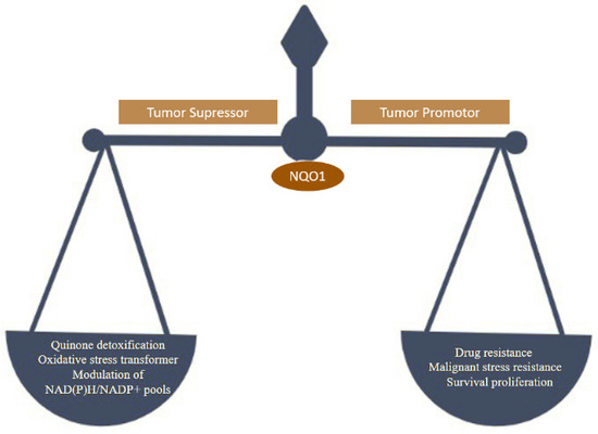 In cancer cells, it is over expressed, encouraging cell proliferation, malignant transformation, and drug resistance. Hence NQO1 acts as both a cancer suppressor and tumor promoter (Figure 2) [11].