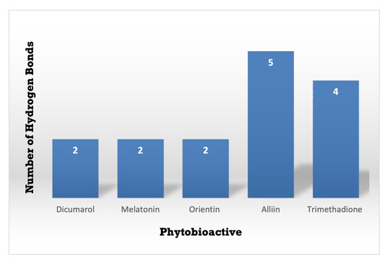 3.3. Molecular Docking Interactions of 2F1O Protein with Selected Phytobioactives
