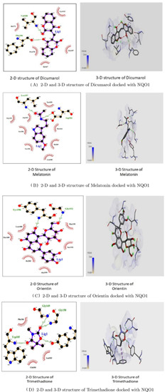 2-D and 3-D structures of several phytobioactives docked with NQO1.