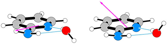 Consideration of the determined nuclear quadrupole coupling constants for AMP and AMW allows several inferences concerning cluster properties. It is best to start comparisons, as made in Table 5, from the χcc constant, since this parameter is along the axis perpendicular to the AMP or AMW plane. It should be invariant to uncertainties concerning the rotation of AMP in this plane, which may affect values of χaa and χbb. Changes in χcc between AMP and AMW will, therefore, directly reflect the effects of complexation.