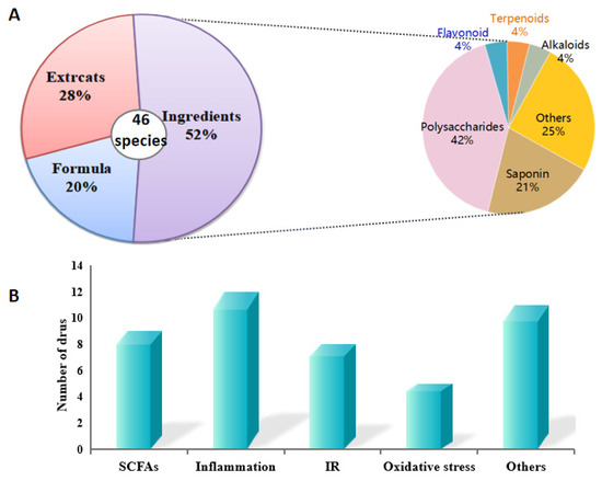 Analysis of MFH and FF showing anti-diabetic effects by modulating gut microbiota in this review. (A) Classification about the active MFH and FF species. (B) the relational mechanism of MFH and FF on T2DM associated with gut micorobiota.