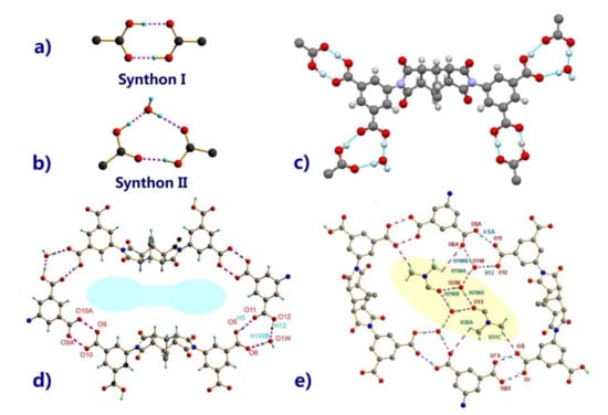 - Hosseini, M.W. Molecular tectonics: From simple tectons to complex molecular networks. Acc. Chem. Res. 2005, 38, 313–323. [Google Scholar] [CrossRef]