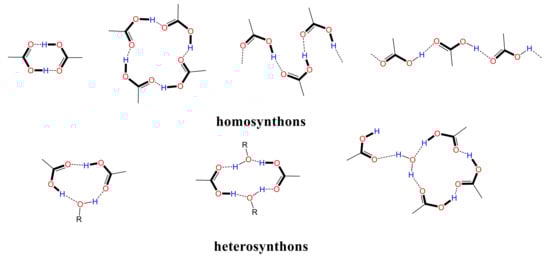 - Desiraju, G.R. Supramolecular synthons in crystal engineering-a new organic synthesis. Angew. Chem. Int. Ed. 1995, 34, 2311–2327. [Google Scholar] [CrossRef]