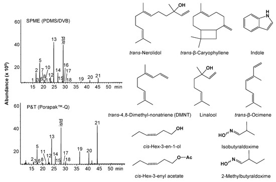 2.1. GC/MS Analysis of Volatile Compounds Isolated by SPME and P&T