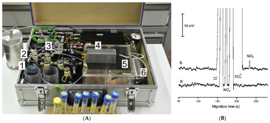 The subject of this review is to present recent achievements in the uses of CE with various detection methods and with different steps of sample processing in the determination of inorganic anions in waters, based on papers published in recent decades. The CE determinations of inorganic ions were already a subject of numerous publications in the past, including numerous reviews, see e.g., [9,10,11], and one on capillary isotachophoresis [12]. Several reviews on the application of CE techniques for the determination of inorganic ions in water analysis [13,14,15] and the use of portable CE systems for applications including water analysis [16] have also been published.