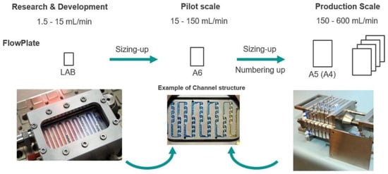 To scale up this lab process, the procedure was transferred to Lonza (Visp, Switzerland), using a Modular MicroReaction System (MMRS) equipped with an A5 FlowPlate reactor, which is about four times larger than the original FlowPlate reactor (Figure 7).