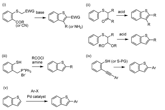 Representative synthetic methods for benzothiophenes.