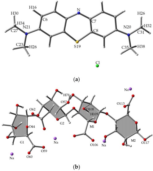 SA is composed of β-D-mannuronic acid (M) and α-L-guluronic acid (G) linked by 1–4 glycosidic bonds having the molecular formula (C6H7NaO6)n [11]. In the calculation, this copolymer was simplified as a tetramer model, as shown in Figure 2.