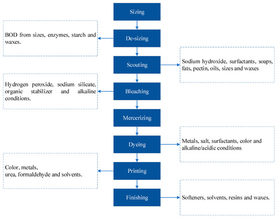 - Savin, I.-I.; Butnaru, R. Wastewater characteristics in textile finishing mills. Environ. Eng. Manag. J. 2008, 7, 859–864. [Google Scholar] [CrossRef]