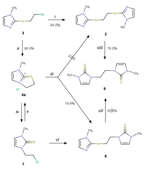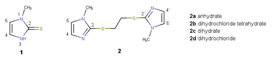 2.1. Reaction of Methimazole (1) with 1,2-Dichoroethane