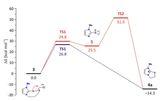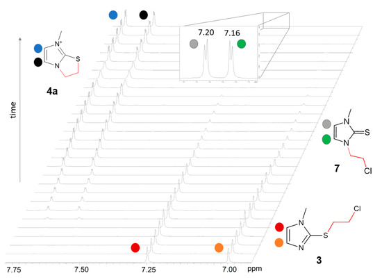 3.4.1. Kinetics of 2-[(Chloroethyl)thio]-1-methyl-1H-imidazole (3) Isomerization in DMSO-d6