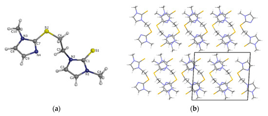 - Štefan, L.; Matković-Čalogović, D.; Filić, D.; Dumić, M. Synthesis, Crystal Structure and Solid State Transformation of 1,2-Bis[(1-methyl-1H-imidazole-2-yl)thio]ethane. Crystals 2020, 10, 667. [Google Scholar] [CrossRef]
