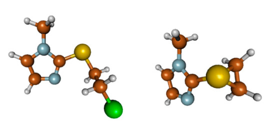 3.3.7. Reaction of 2-[(Chloroethyl)thio]-1-methyl-1H-imidazole (3) with Methimazole (1)