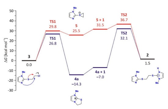 Chicago/Turabian StyleŠtefan, Leo, Ana Čikoš, Robert Vianello, Ivica Đilović, Dubravka Matković-Čalogović, and Miljenko Dumić. 2021. "Chemistry of Spontaneous Alkylation of Methimazole with 1,2-Dichloroethane" Molecules 26, no. 22: 7032. https://doi.org/10.3390/molecules26227032
