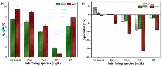 2.6. Influence of Interfering Ions on As(III, V) Sorption