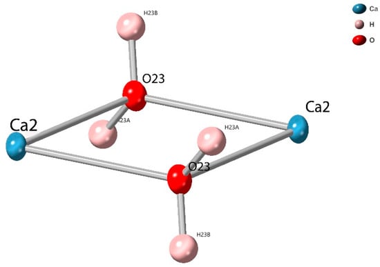 View of the bonding environment around the Ca1 dimer in SIMOF-4 (50% probability ellipsoids).