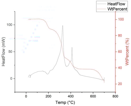 Thermo-gravimetric analysis of SIMOF-4, taken at a ramp rate of 5 °C/min.