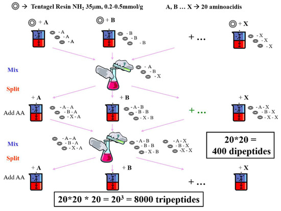 Schematic illustration of split–and–mix combinatorial synthesis.