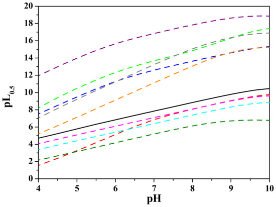 Briefly, the higher the pL0.5 is the stronger the sequestering ability. The reader may find further details concerning pL0.5 definition and use in [38,39,40,41,42].